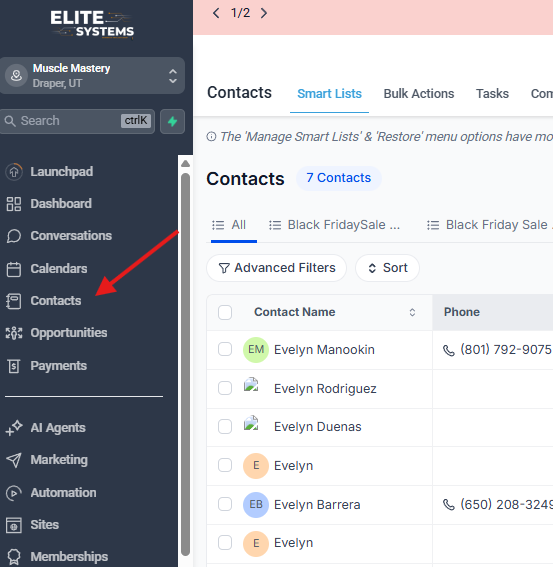2. Go to Elite Systems then Contacts